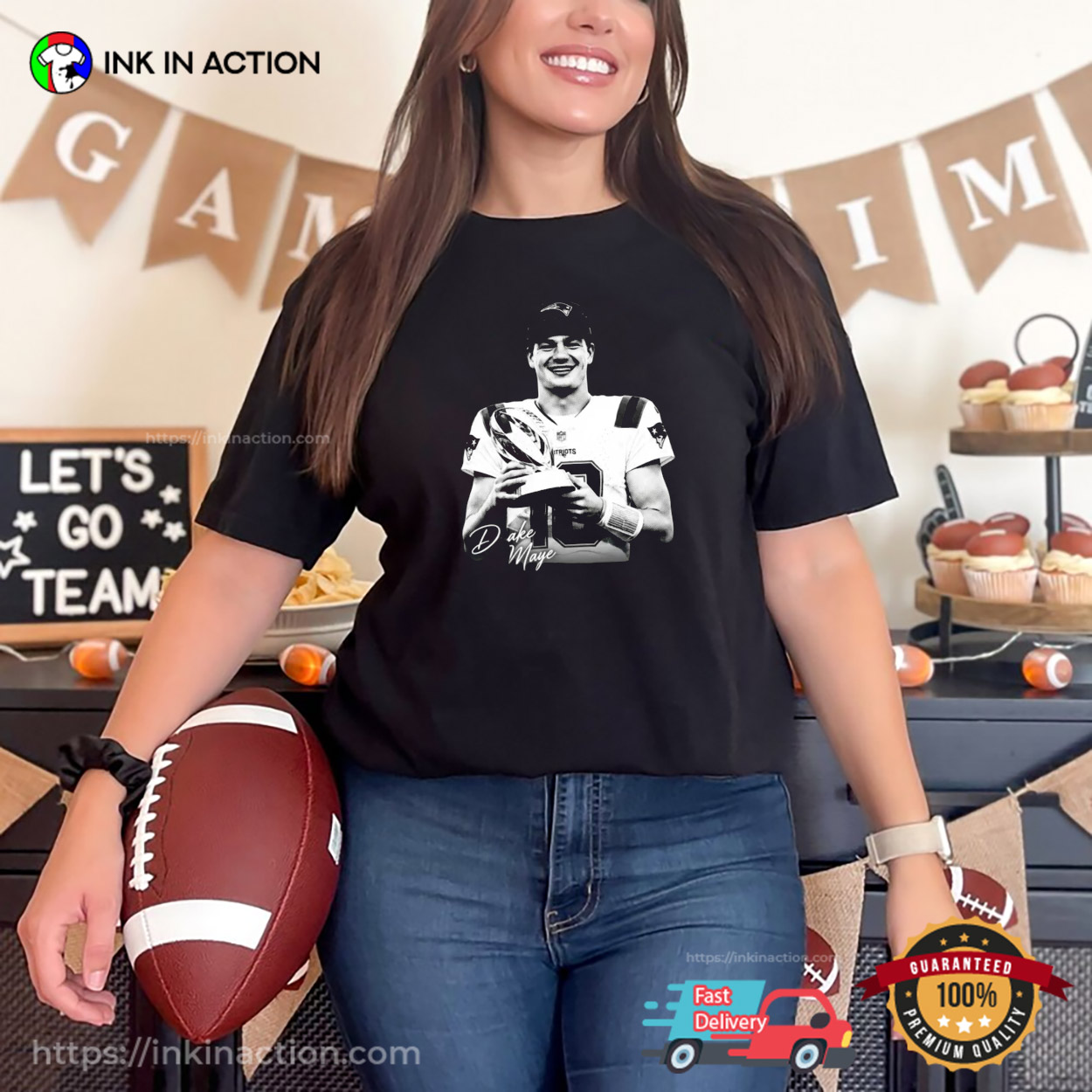 Our Drake Maye Patriots AFC Championship Bootleg Shirt is perfect for those who want to show off their love for their favorite sport or team while staying comfortable and stylish.