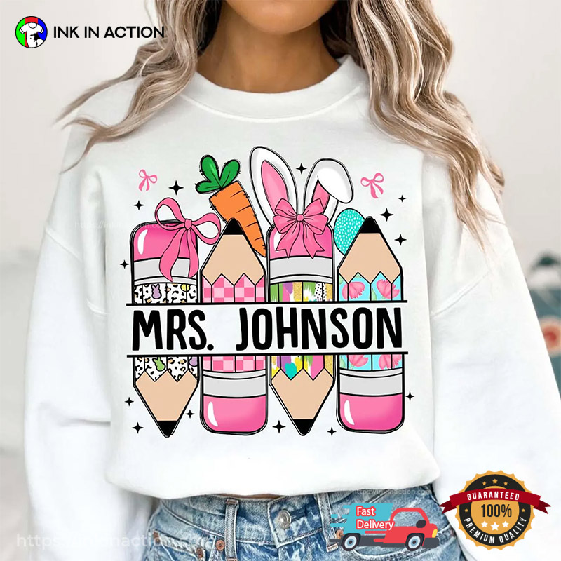 Personalized Easter Pencil Bow Tie Teacher Shirt: Celebrate in Comfort and Style!