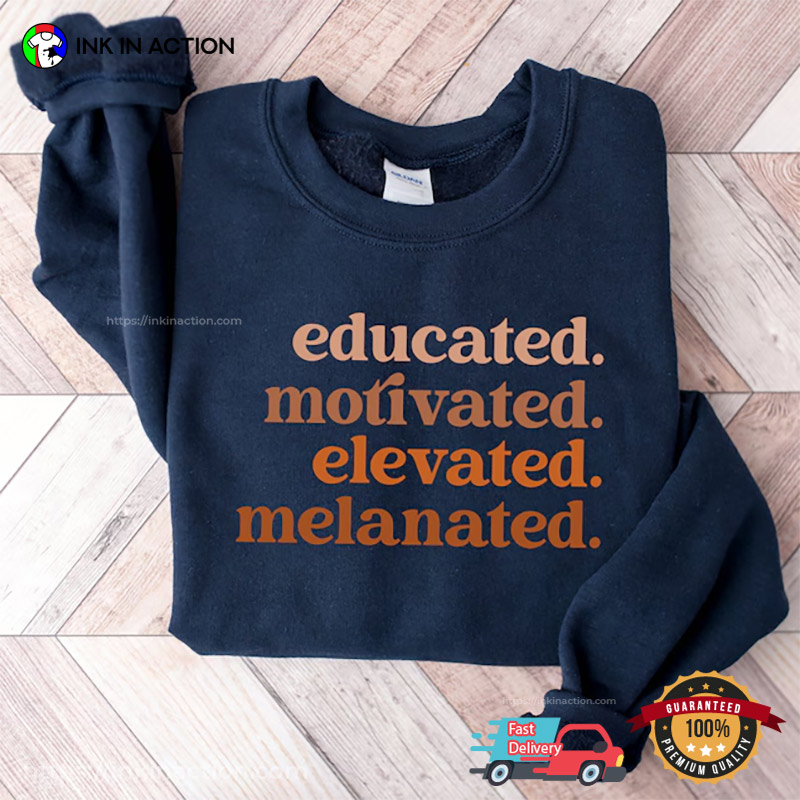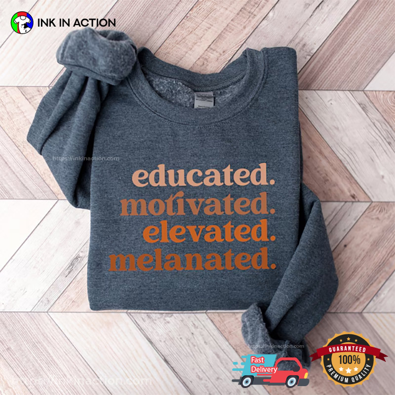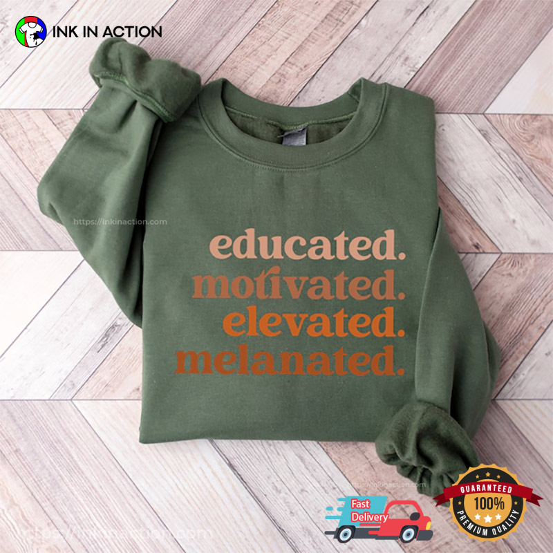Educated Motivated Elevated Melanated, Black History Month T-shirt