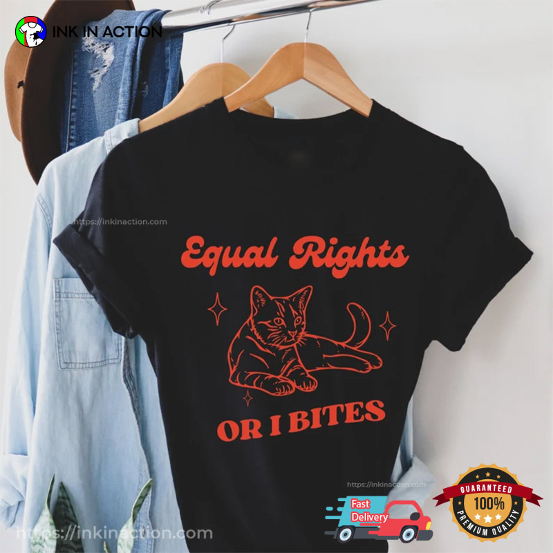 Show your support for gender equality with our Feminist Cat Equal Rights Or I Bites shirt! Featuring empowering slogans and bold designs like “The Future is Female” or “Smash the Patriarchy,” this shirt is perfect for activists, allies, and advocates for change.