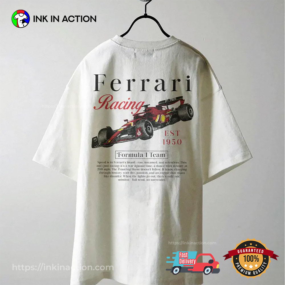 Step into the fast lane with a Ferrari F1 Racing T-Shirt, designed for true racing fans who live for speed, precision, and the roar of the engine. Whether you’re cheering for your favorite team, driver, or just love the thrill of race day, this tee brings the excitement of the track to your wardrobe. Featuring iconic logos, car silhouettes, and high-octane graphics, it’s the perfect fit for race weekends, watch parties, or everyday style.