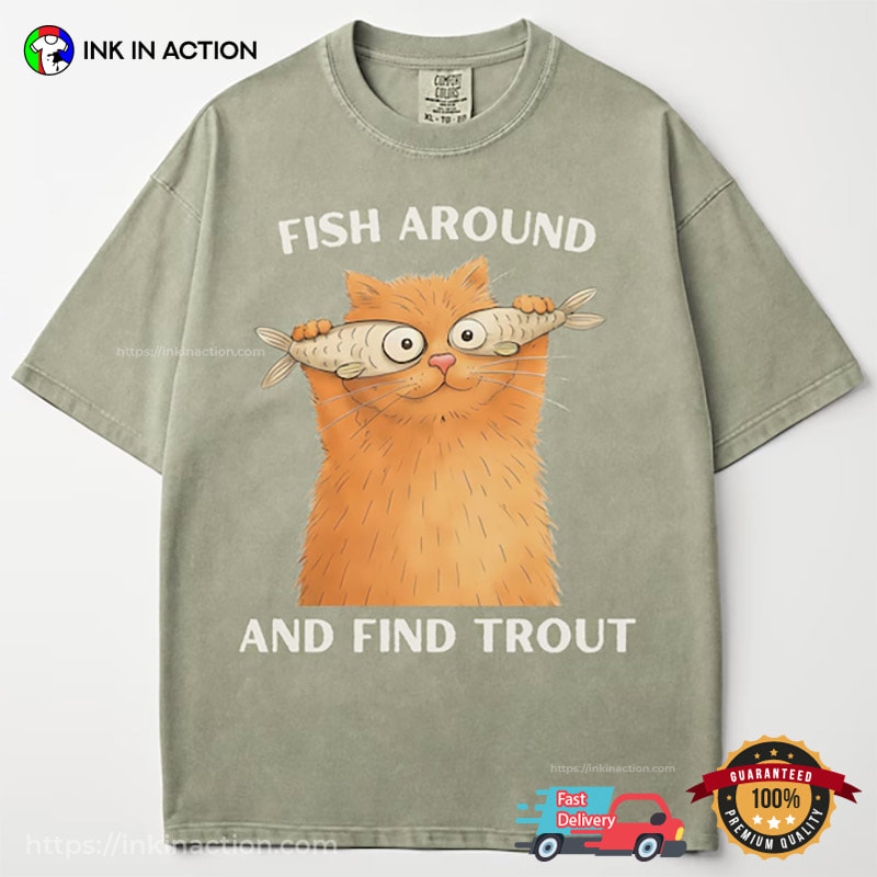 Fish Around And Find Trout Funny Silly Cat Comfort Colors Shirt