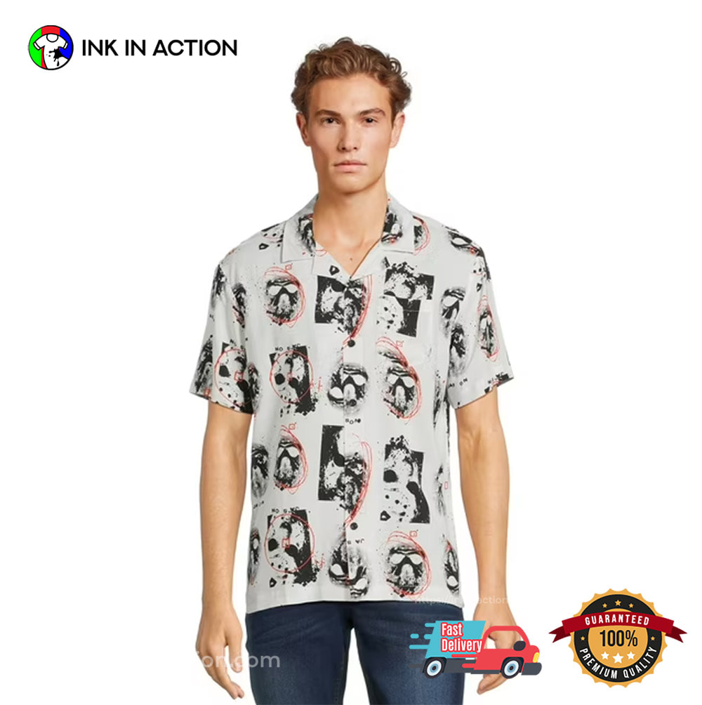 Bring the Aloha spirit everywhere you go with our Friday The 13th Men’s And Big Men’s Mask Scribble Button Hawaiian Shirt ! InkInAction.com is your ultimate destination for vibrant and stylish Hawaiian shirts that capture the essence of tropical paradise!