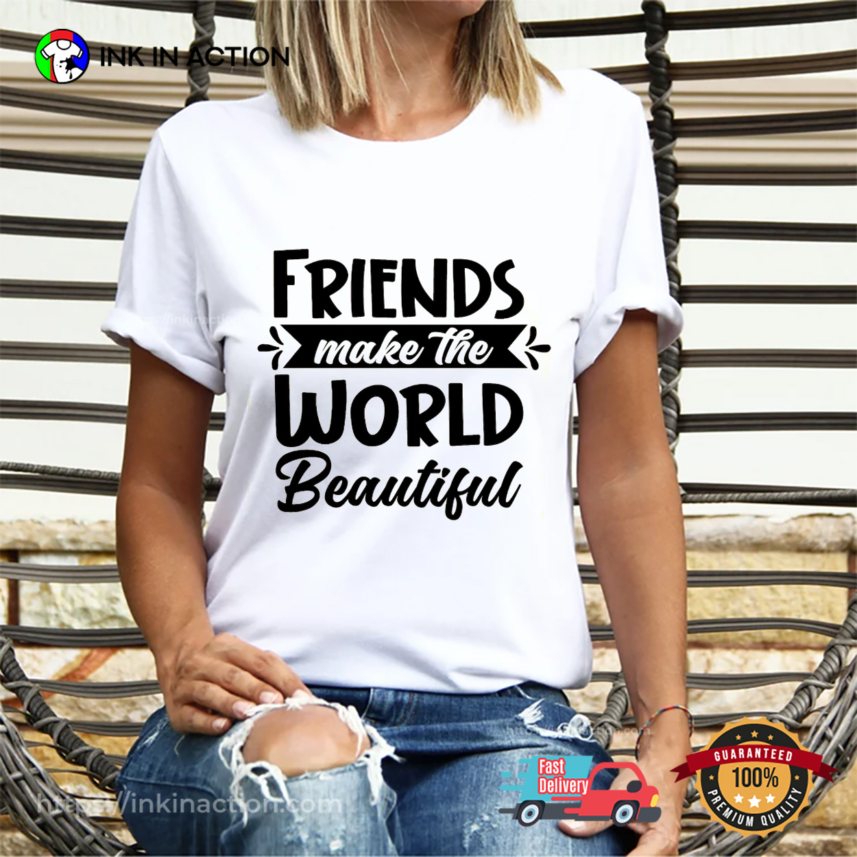 Celebrate your unbreakable bond with the Friends Make The World Beautiful Shirt, designed to honor the laughs, memories, and love you share. Made from soft, comfy fabric, it’s perfect for matching outfits, selfies, or gifting your BFF. Featuring fun and heartfelt graphics, it’s friendship you can wear. True friendship never goes out of style—wear it proudly!