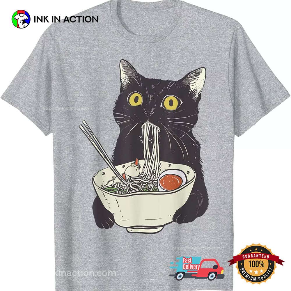 With Ink In Action’s Funny Cat Eating Ramen Japanese Art Comfort Colors Shirt, you may go out with your pals in style.