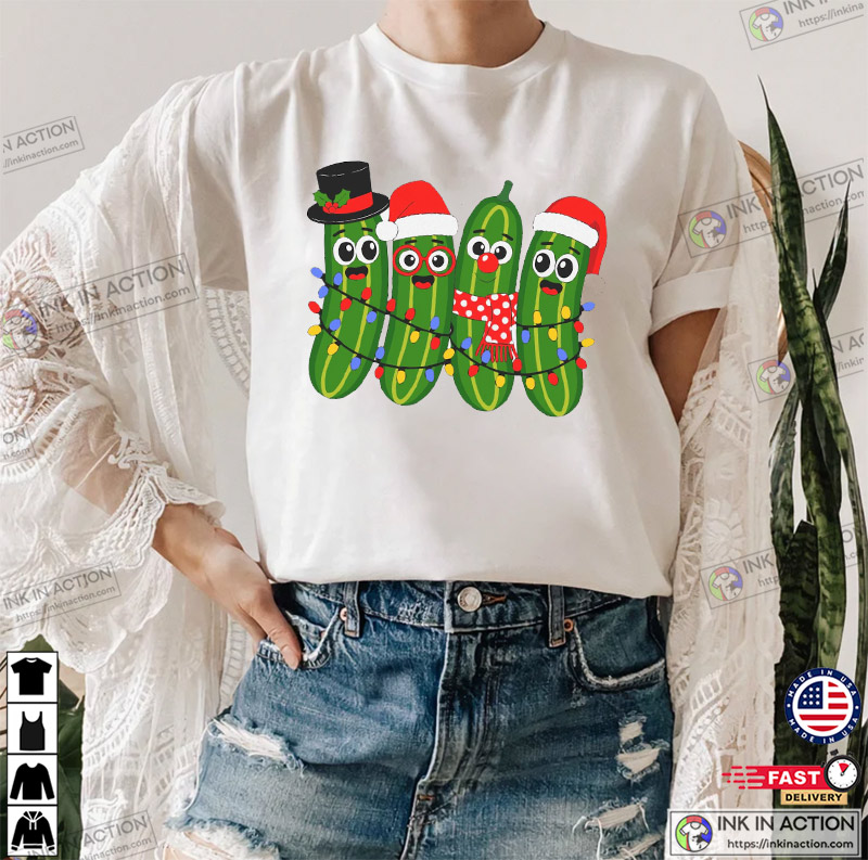 Funny Christmas Pickles Family Animation Shirt have become a staple in festive wardrobes, and our collection takes this tradition to a whole new level. Whether you’re attending a holiday party, decorating the tree, or sipping cocoa by the fire, our Christmas T-shirts ensure you do it in style. The festive designs capture the essence of the season, from classic holiday motifs to beloved Disney characters dressed in their holiday best.