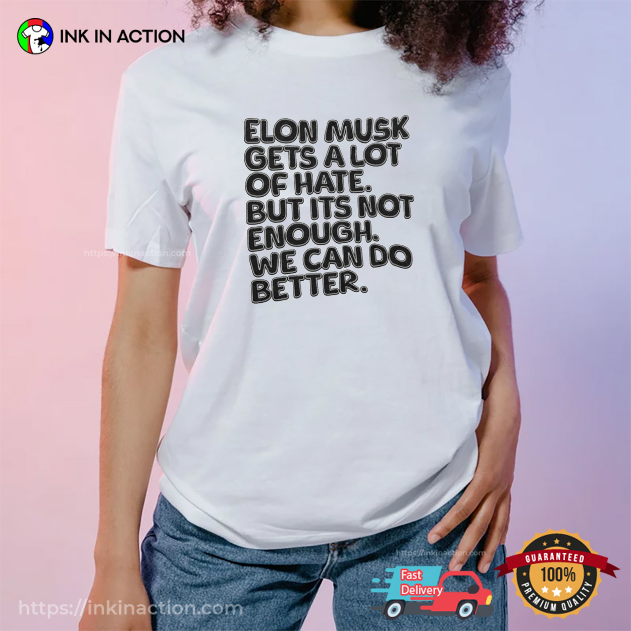 Elon Musk Gets A Lot Of Hate But Its Not Enough, Fuck Elon Musk T- shirt: Bold Style, Big Personalities!