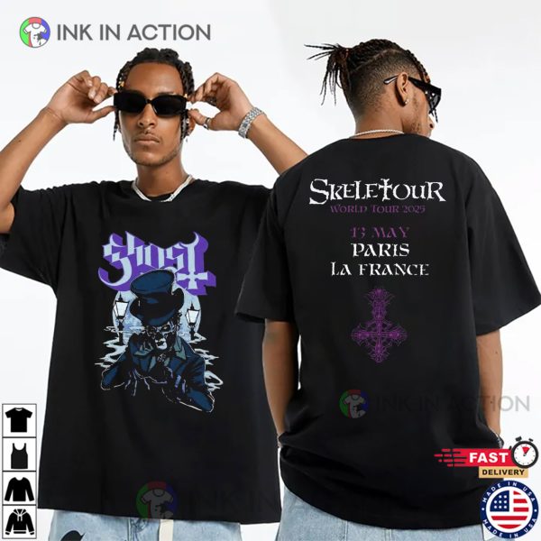 Get ready to haunt the scene with the Ghost Skeletour World Tour 2025 Paris La France 2-sided T-shirt, perfect for fans of heavy riffs and theatrical metal. Crafted from premium, soft fabric, this tee features bold, bone-chilling tour graphics that stand out in any crowd. Embrace the dark—wear the tour, summon the spirit of metal!