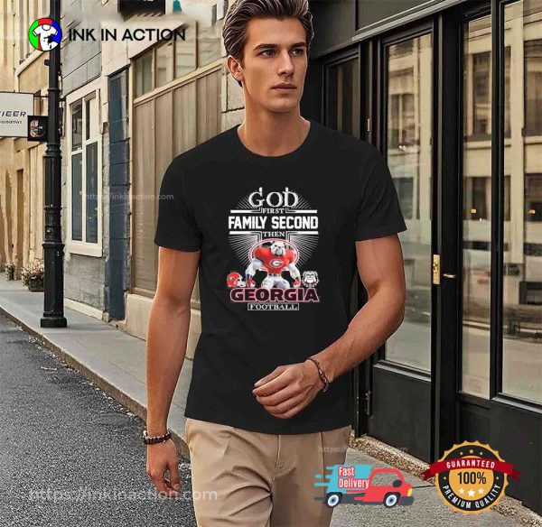 Welcome to Ink In Action, your go-to print-on-demand website for God First Family Second Then Georgia Bulldogs Football Mascot Shirt. We offer a wide selection of sports shirts for various sports enthusiasts, from golfers to basketball fans.