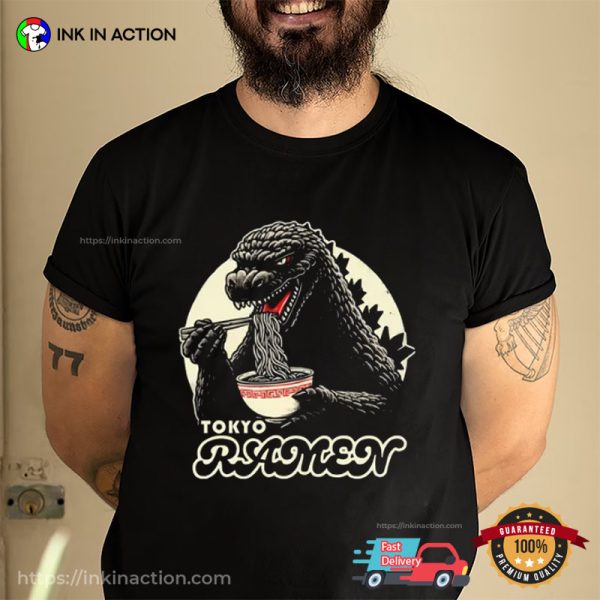 Vintage Godzilla Giant Monster Eating Ramen T-shirt: Unleash the King of Monsters!