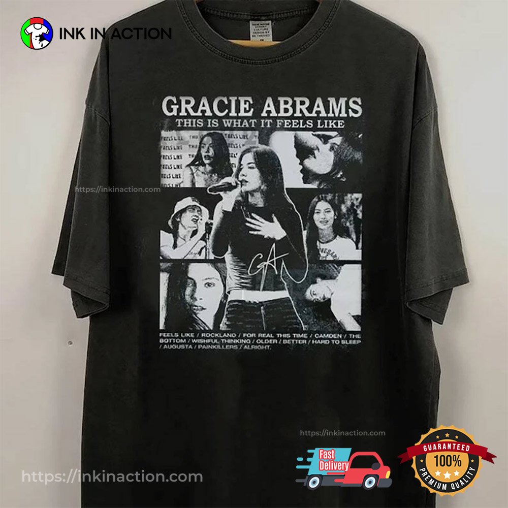 Attention music lovers, let’s check out our Gracie Abrams This Is What It Feels Like T-shirt, proudly printed in the USA by InkInAction.com. With its unique and eye-catching design, this shirt will turn heads and start conversations.