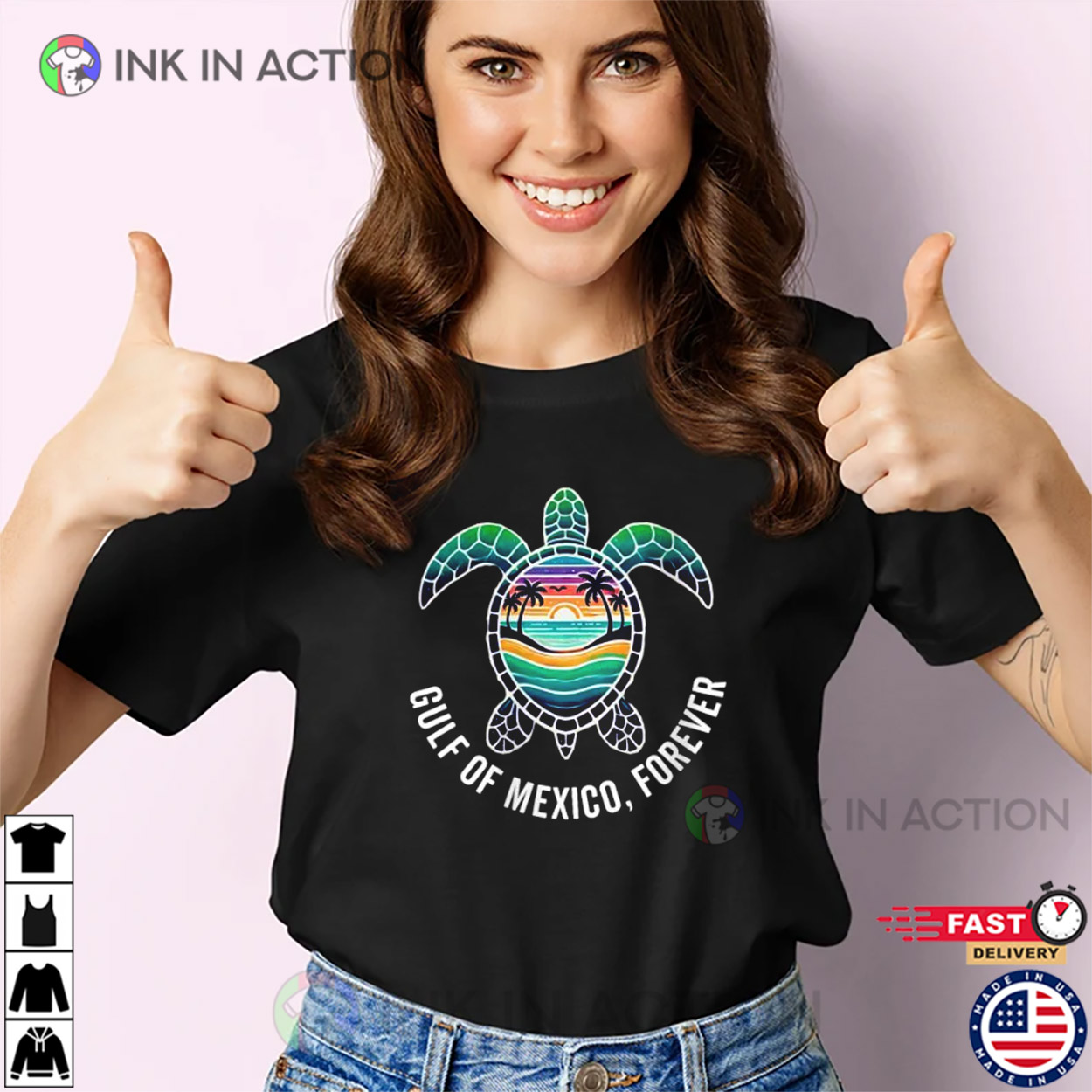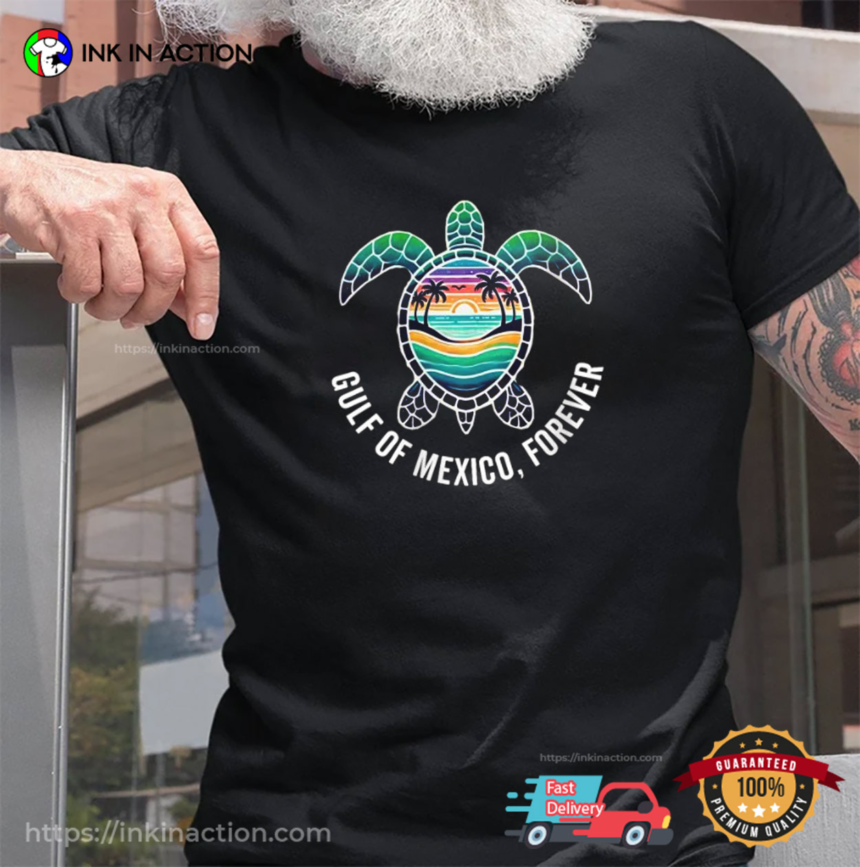 The Coastal region, Gulf of America, Gulf of Mexico, political category applies to this Guif Of Mexico Forever Beach Turtle T-shirt.