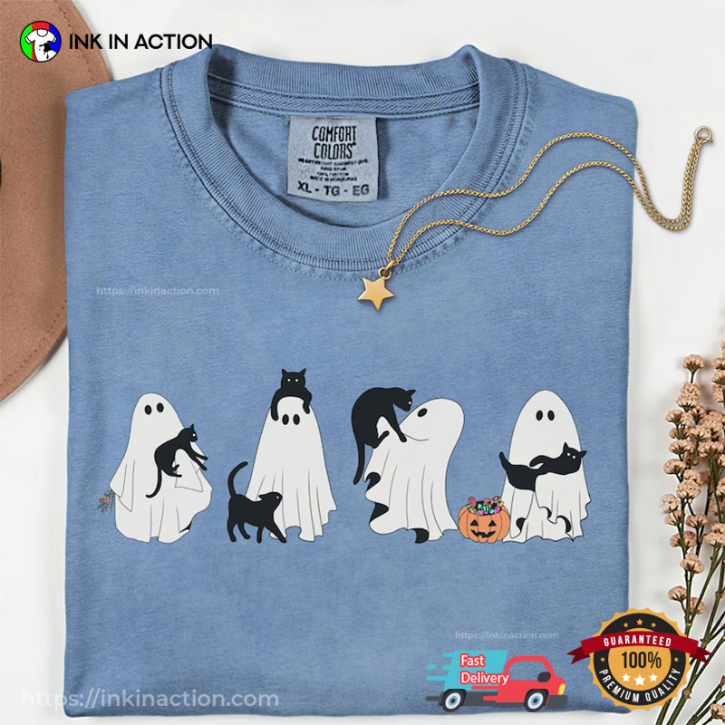 Are you ready to step into the spooky season with style and flair? Look no further than our Halloween Black Cat And Ghost Trick Or Treat Comfort Colors T-shirt at InkInAction.com! With a wide range of designs and styles, we’ve got something for everyone to enjoy this Halloween.
