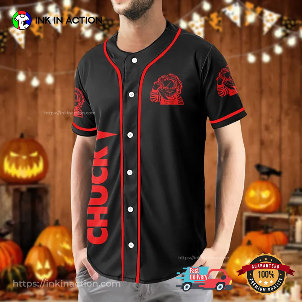 Welcome to Ink In Action, your ultimate destination for custom baseball jerseys that transcend the ordinary. With a decade of working with sports shirts, we would like to walk you through the thrilling world of custom baseball clothing and get you ready to hit a home run with Halloween Chucky Baseball Jersey!