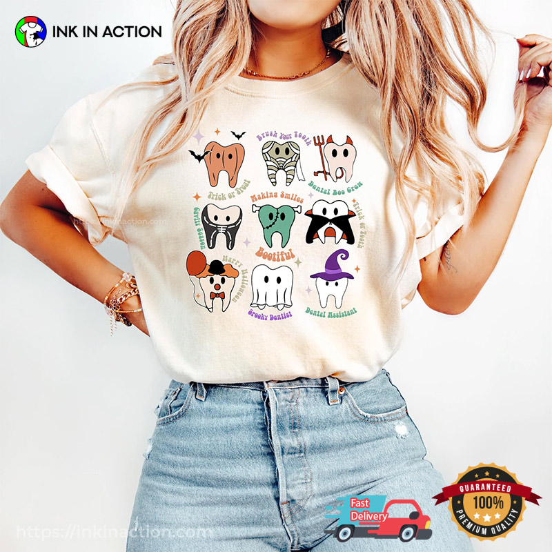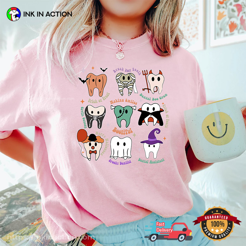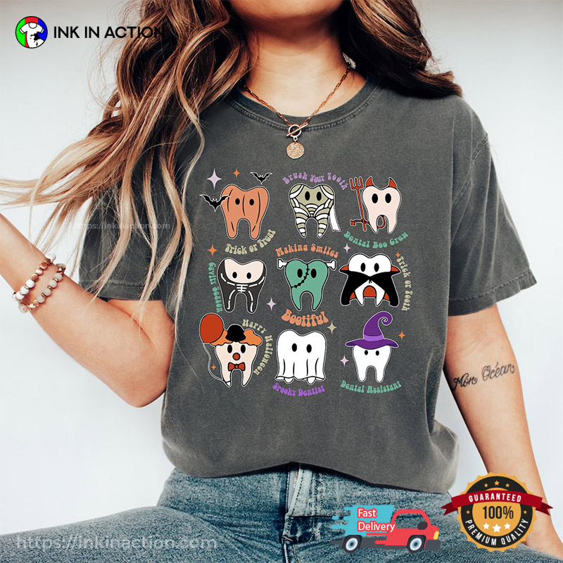 Are you ready to step into the spooky season with style and flair? Look no further than our Halloween Tooth Dental Hygienist Comfort Colors T-shirt at InkInAction.com! With a wide range of designs and styles, we’ve got something for everyone to enjoy this Halloween.