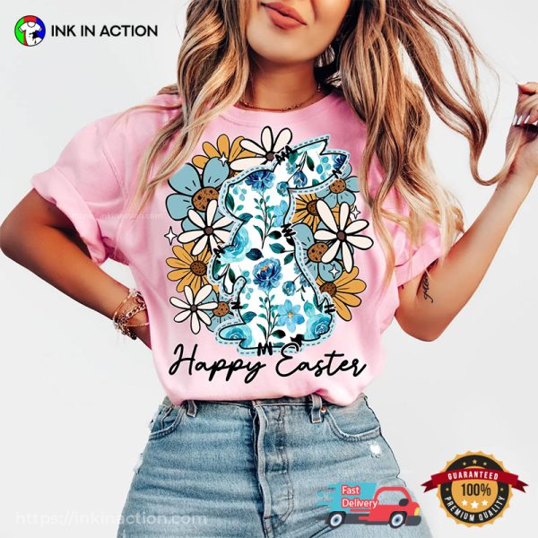 Happy Easter Bunny And Flowers Comfort Color Tee: Celebrate in Comfort and Style!