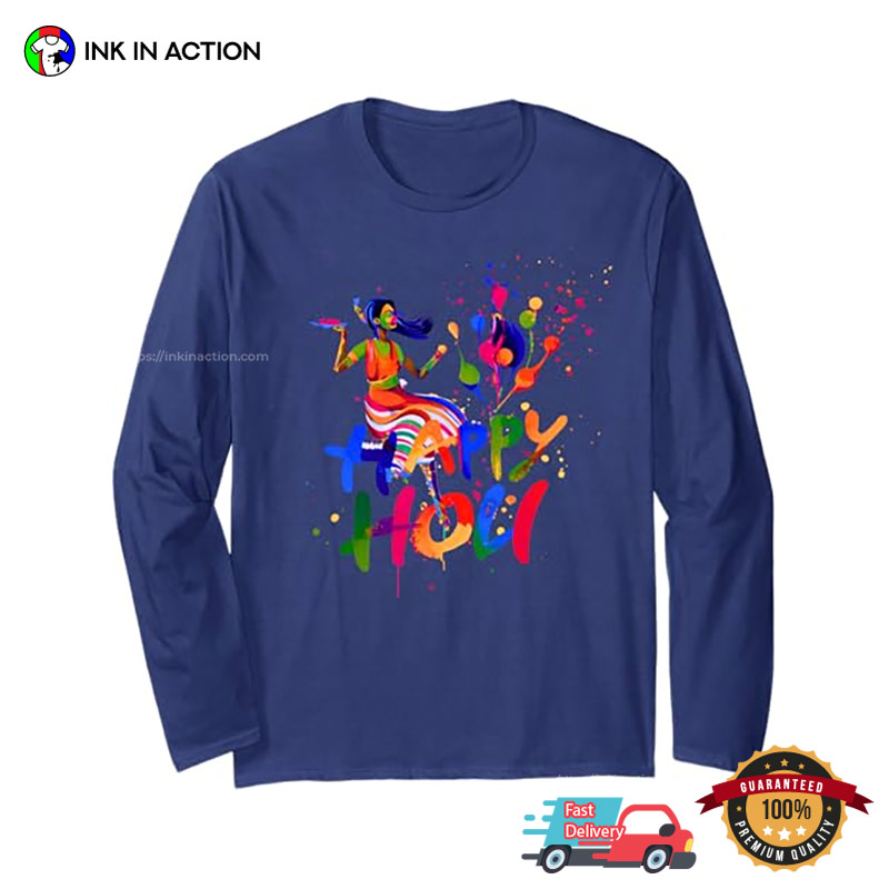 Celebrate the vibrant Festival of Colors with a Happy Holi Festival Color Hindu Girl T-shirt! Featuring bright, colorful splashes, playful patterns, and festive designs, this shirt captures the joy and spirit of Holi. Perfect for Holi parties, gatherings, or simply embracing the festival’s message of love and unity.