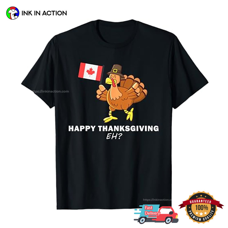 Are you ready to celebrate the holiday season with style and ease? Look no further! Our Happy Thanksgiving Eh, Vanada Thanksgiving Turkey T-shirt, printed right here in the USA, offers affordable and practical options that will make your life stress-free and your celebrations unforgettable.