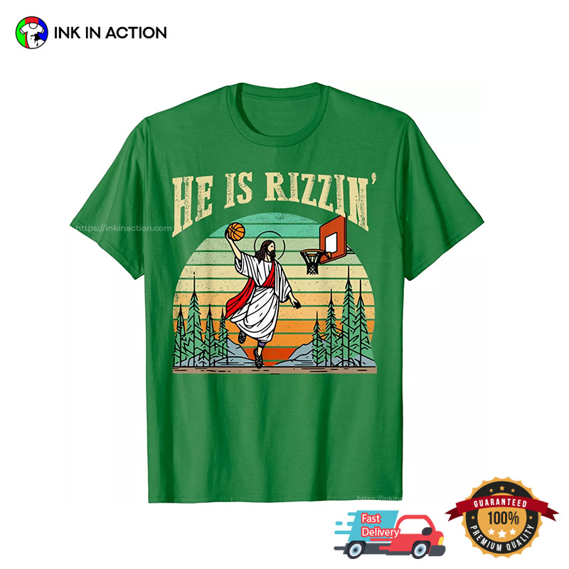 He Is Rizzin Jesus Basketball Vintage 90s T-shirt