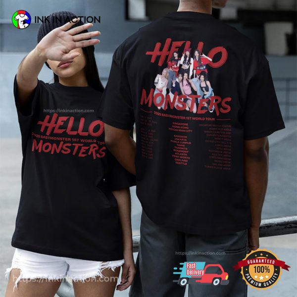 Attention music lovers, let’s check out our BABYMONSTER Hello Monsters Tour Dates 2 Sided Shirt, proudly printed in the USA by InkInAction.com. With its unique and eye-catching design, this shirt will turn heads and start conversations.