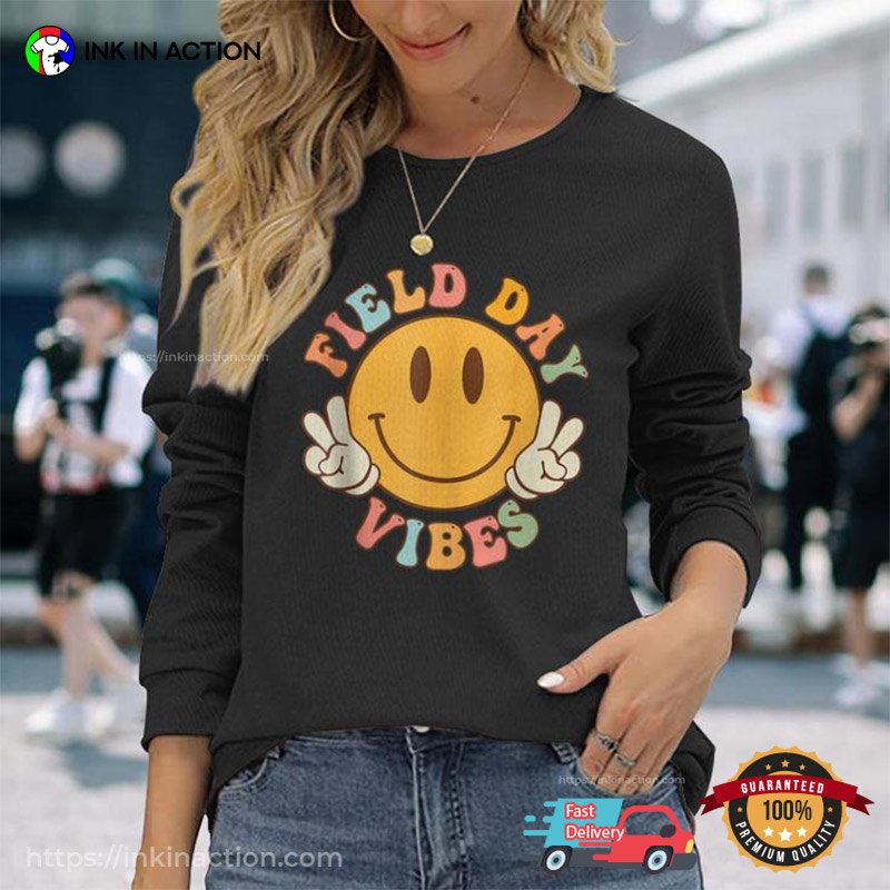 Hippie Smile Face Field Day Vibes Vintage T-shirt: Play Hard, Laugh Loud!