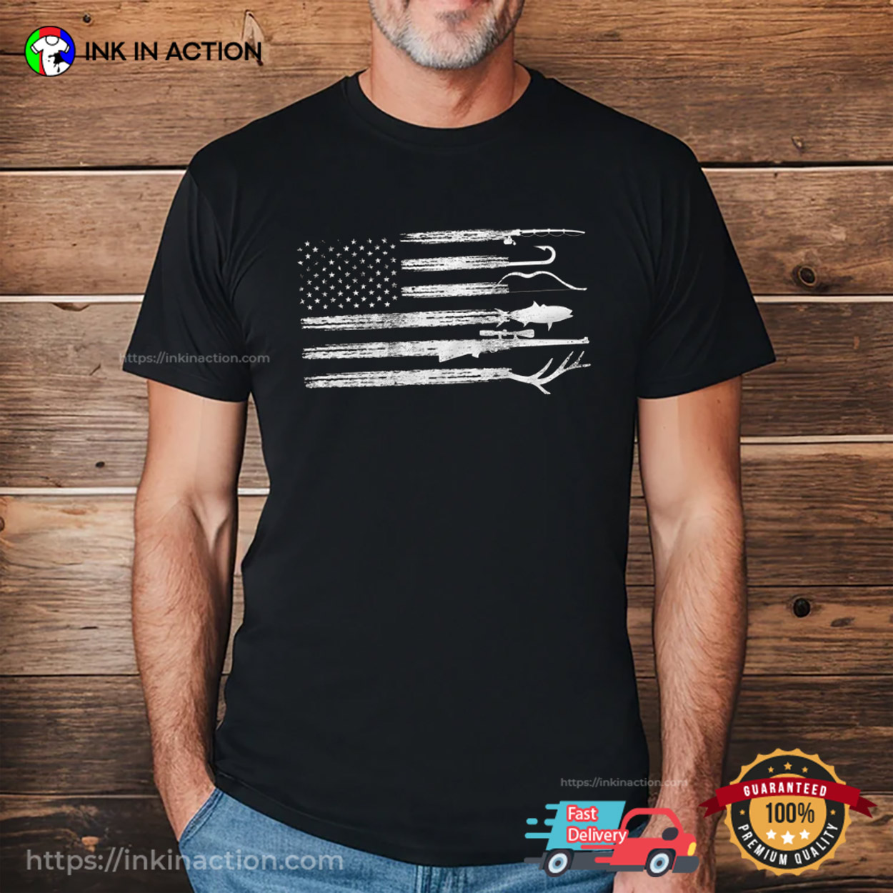 Are you ready to celebrate the holiday season with style and ease? Look no further! Our Hunting And Fishing American Flag Shirt, printed right here in the USA, offers affordable and practical options that will make your life stress-free and your celebrations unforgettable.