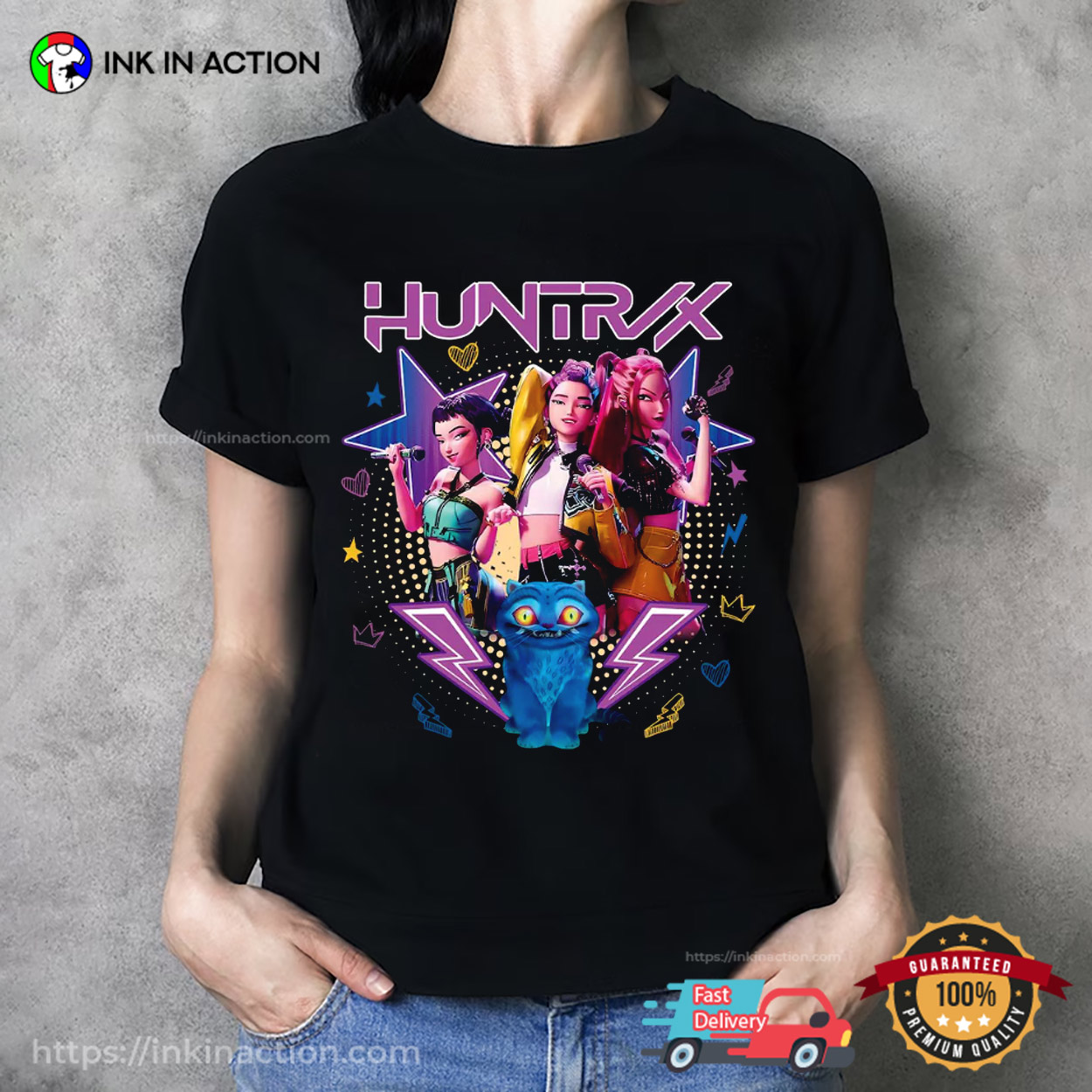 Welcome to InkInAction.com, where style meets cinema. If you’re a movie enthusiast, fashion-forward individual, or simply someone who appreciates the power of storytelling through film, our collection of Huntrix Girls Kpop Demon Hunters Graphic T-shirt is designed for you. Not only are our T-shirts inspired by iconic retro films and proudly printed in the USA, but they’re also a testament to the nostalgia and passion that movies evoke.