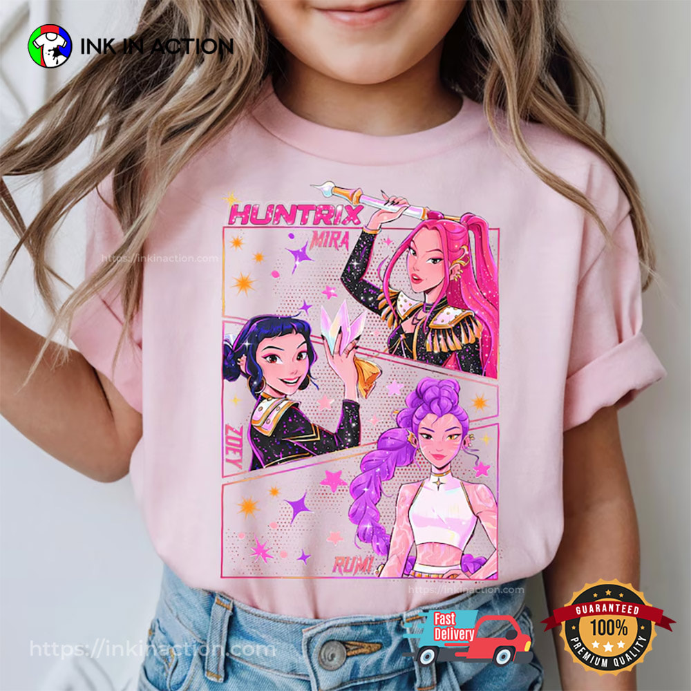 In the ever-evolving fashion world, staying on trend is not just a choice; it’s a statement. Our Huntrix Kpop Demon Hanters Mira Rumi Zoey T-shirt are more than garments; they are canvases of self-expression, reflecting the spirit of the times. We understand that fashion is a language, and our trending shirts speak volumes.