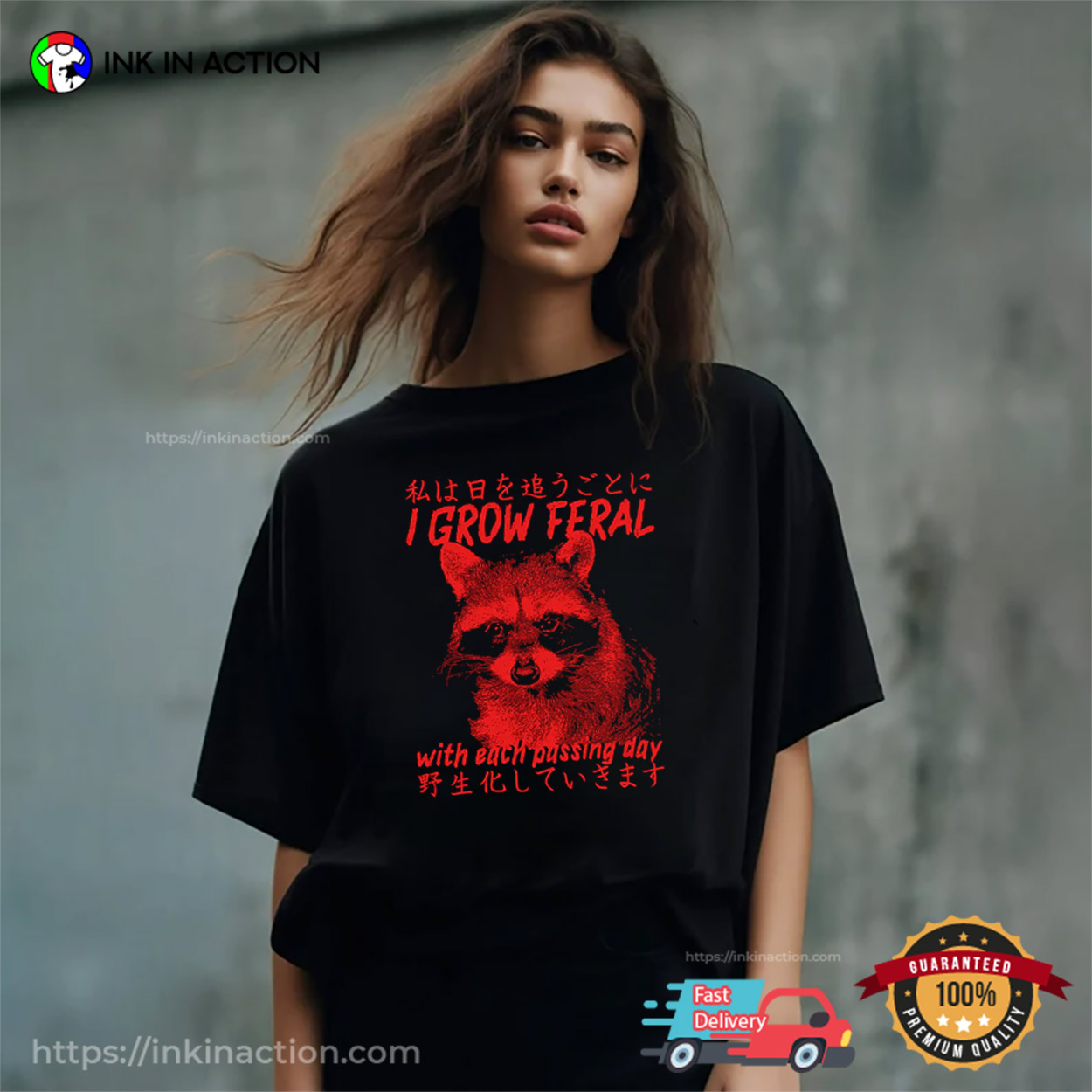 Looking for a statement piece that keeps you stylish and comfortable all year round? Our I Grow Feral With Each Pasing Day Cute Raccoon Tee are designed for those who love to stand out and express themselves through fashion-forward designs, pop culture references, and iconic graphics.