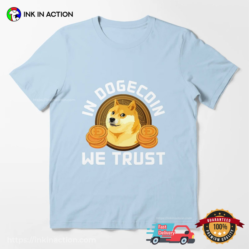 Have you ever been giddy about great trending t-shirts? Want something that will keep you consistently warm on those long, chilly nights? So stop looking now! You own this In Dogecoin We Trust Shiba Meme T-shirt.