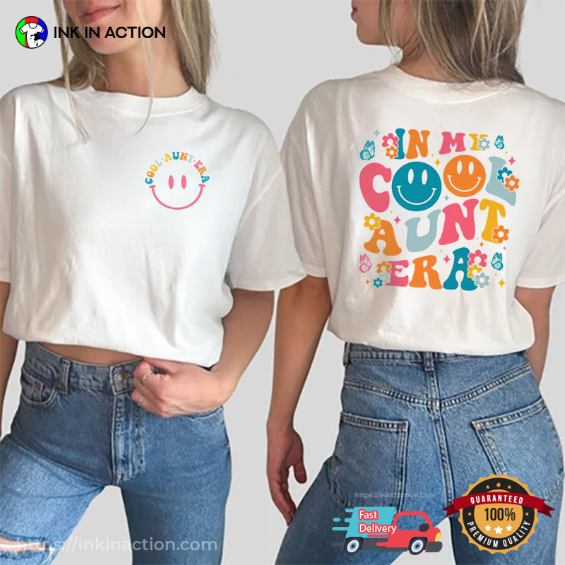 In My Cool Aunt Era Groovy Smiley Face 2 Sided T-shirt
