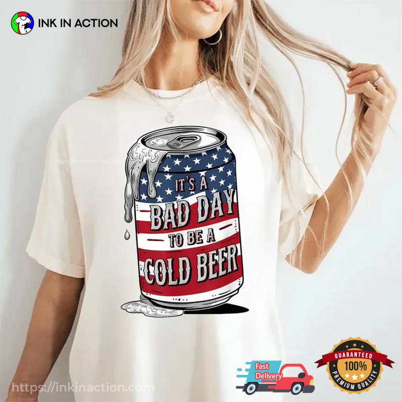 Are you ready to celebrate the holiday season with style and ease? Look no further! Our It’s A Bad Day To Be A Cold Beer 4th of July Comfort Colors Tee, printed right here in the USA, offers affordable and practical options that will make your life stress-free and your celebrations unforgettable.