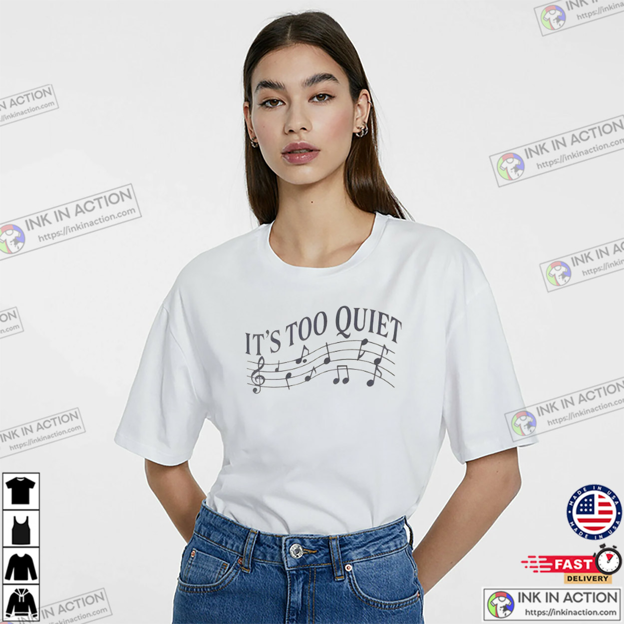 Attention music lovers, let’s check out our It’s Too Quiet Musical Olivia Rodrigo T-shirt, proudly printed in the USA by InkInAction.com. With its unique and eye-catching design, this shirt is sure to turn heads and start conversations.