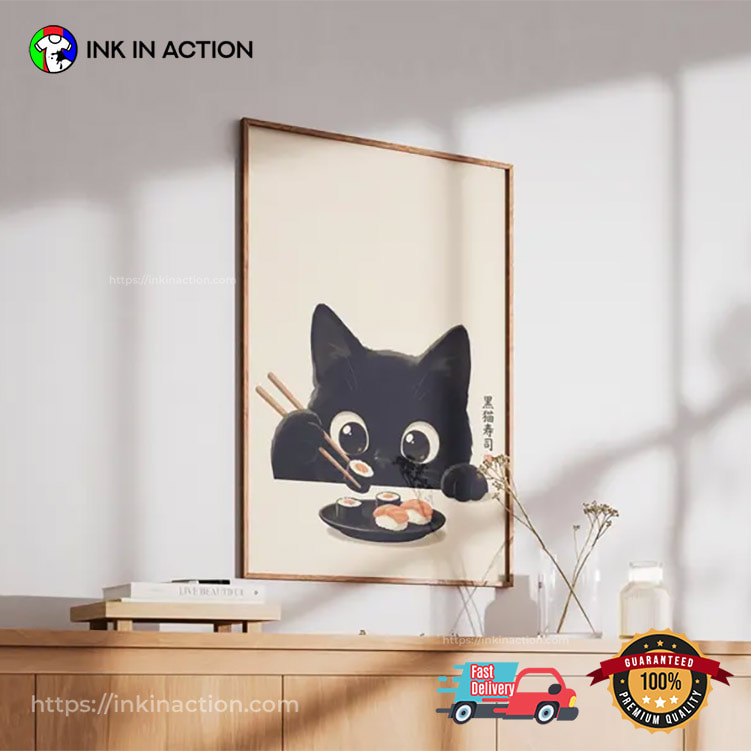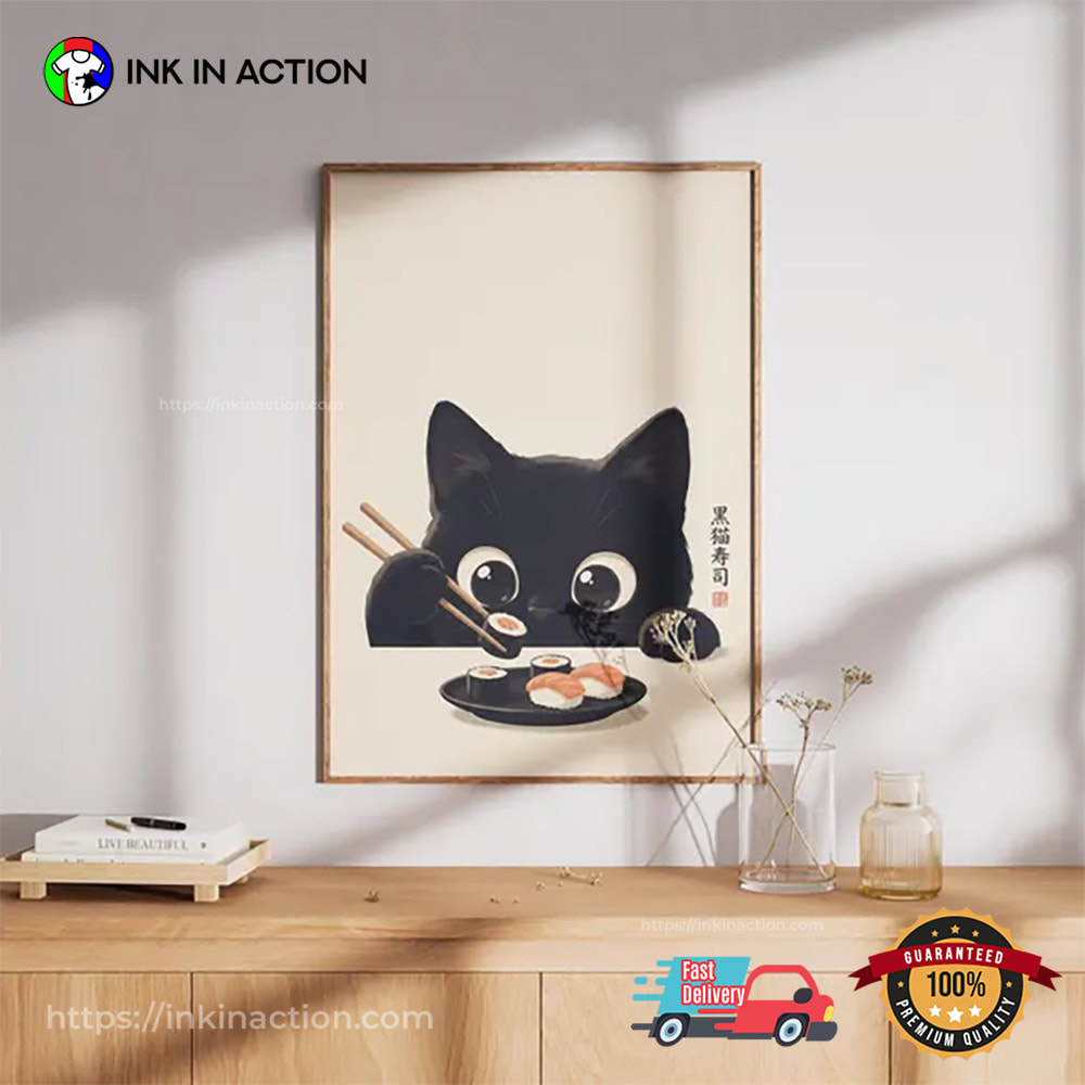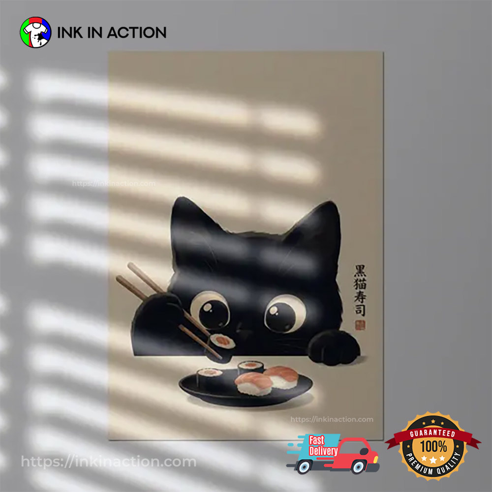 Your home is a reflection of who you are, and our Japanese Black Cat Sushi Poster is the perfect way to tell your story. Whether you want to showcase your love for nature, music, or travel, our high-quality printing and customizable design will bring your vision to life.