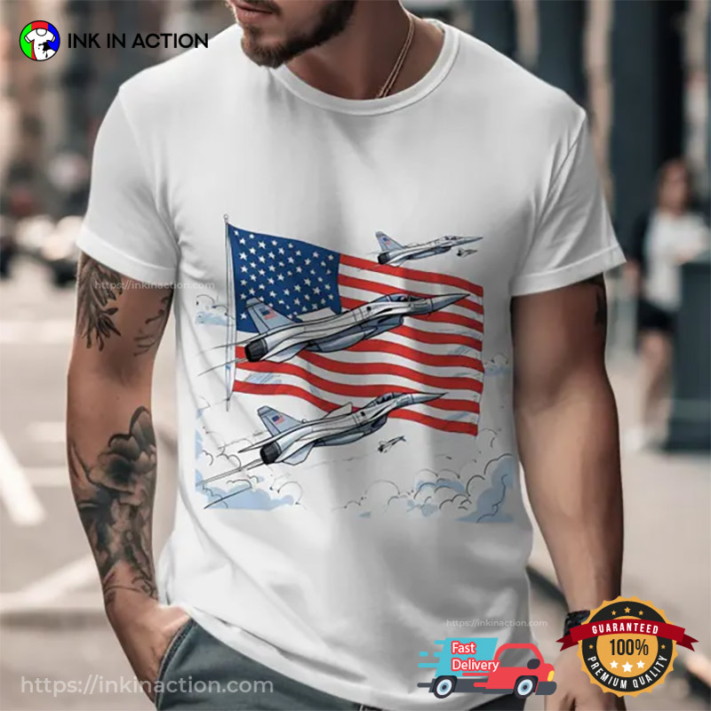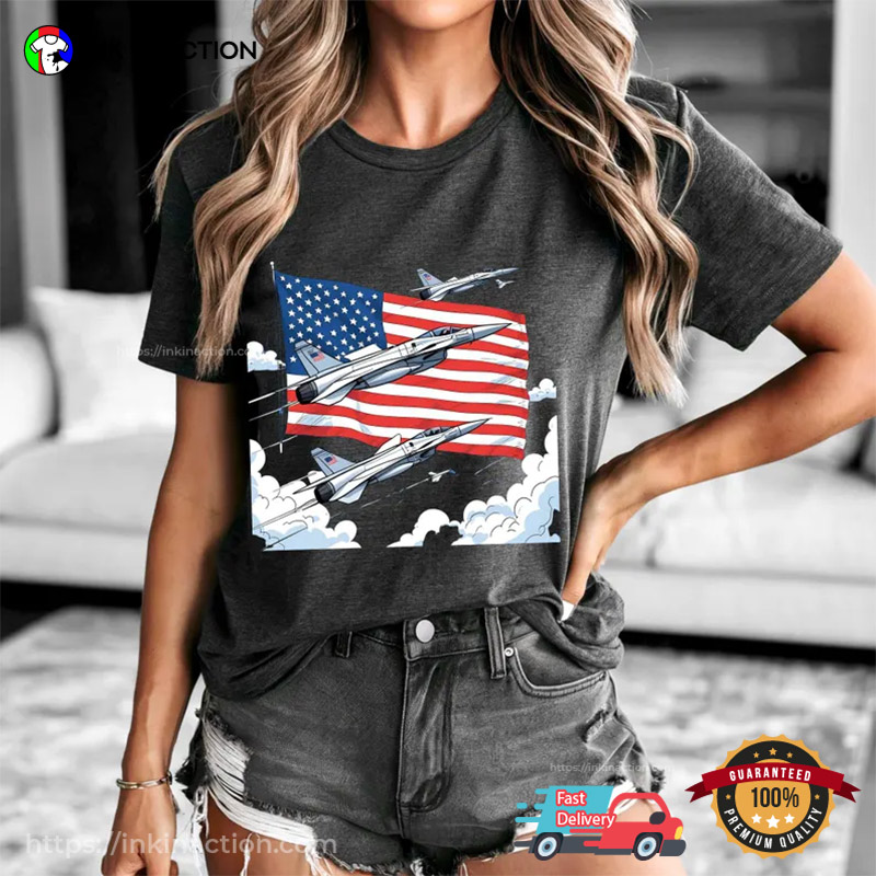 Patriotic Jet Fighter 4th Of July USA T-shirt: Soar with American Innovation!