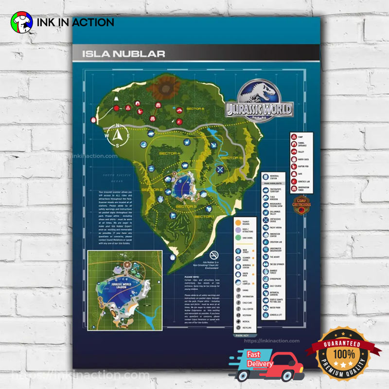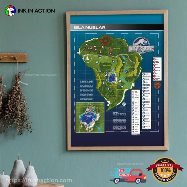Jurassic World Camp Isla Nublar Map Wall Art: Unleash Dino-Mite Style!