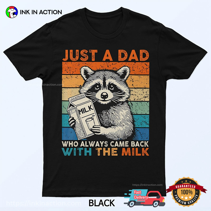 Just A Dad Who Always Came Back With The Milk Retro Raccoon Milk T-shirt: Wearable Love, One Laugh at a Time!