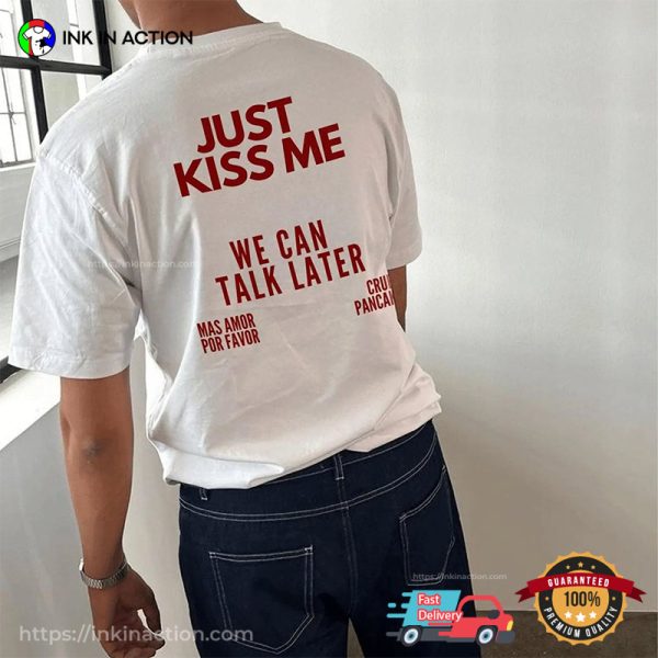 JUST KISS ME We Can Talk Later Funny Back Tee