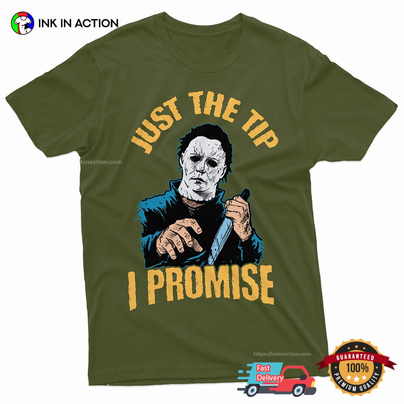 Are you ready to celebrate the holiday season with style and ease? Look no further! Our Just The Tip I Promise Funny Michael Myers Shirt, printed right here in the USA, offers affordable and practical options that will make your life stress-free and your celebrations unforgettable.