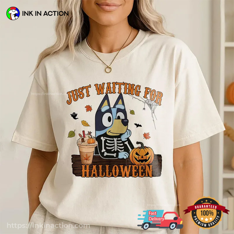 Just Waiting For Halloween Skeleton Bluey Comfort Colors Tee
