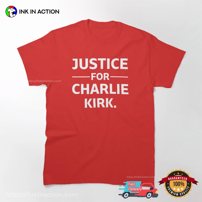 This Justice For Charlie Kirk Unisex T-shirt is categorized as tags: Charlie Kirk Shot Dead, Rip Charlie Kirk, Turning Point USA.