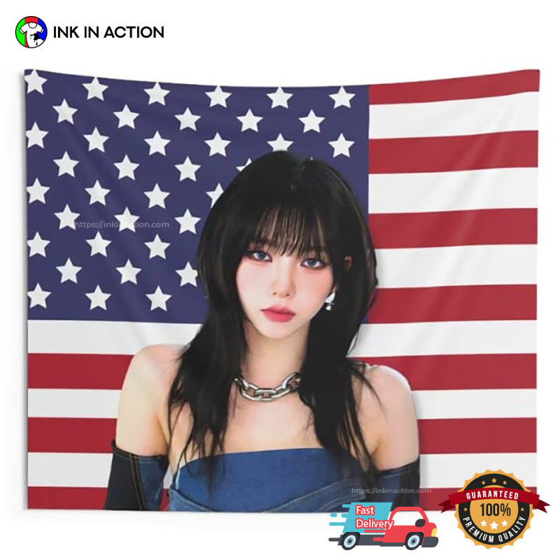 The decor, poster, trending category applies to this Karina AESPA Wolf Cut American Flag.