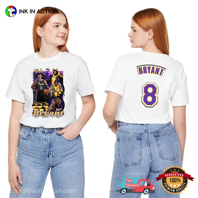 Honor the legacy of a basketball legend with the Kobe Bryant 8 Los Angeles Lakers GOAT 2 Sided Tee. Featuring powerful designs inspired by the Black Mamba’s iconic career, this tee is perfect for fans who want to celebrate his greatness on and off the court. Made from soft, high-quality cotton, it offers lasting comfort whether you’re shooting hoops, watching highlights, or representing a true icon. Available in various sizes and styles, the Kobe Bryant T-shirt is a must-have for any hoops enthusiast. Get yours today and carry the Mamba Mentality with pride. 🐍🏀💜💛