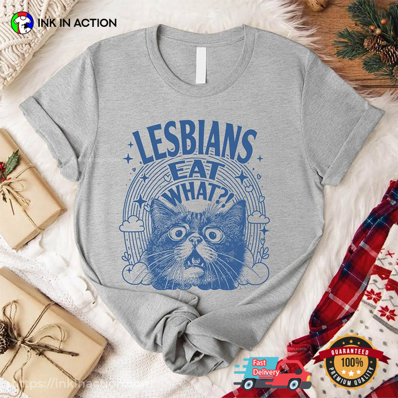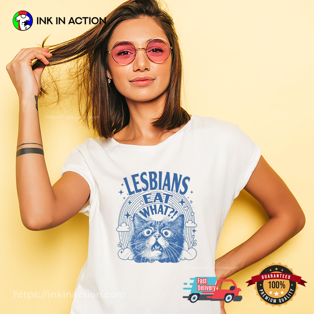 Lesbians Eat What Funny LGBTQ Sarcastic Cat T-shirt