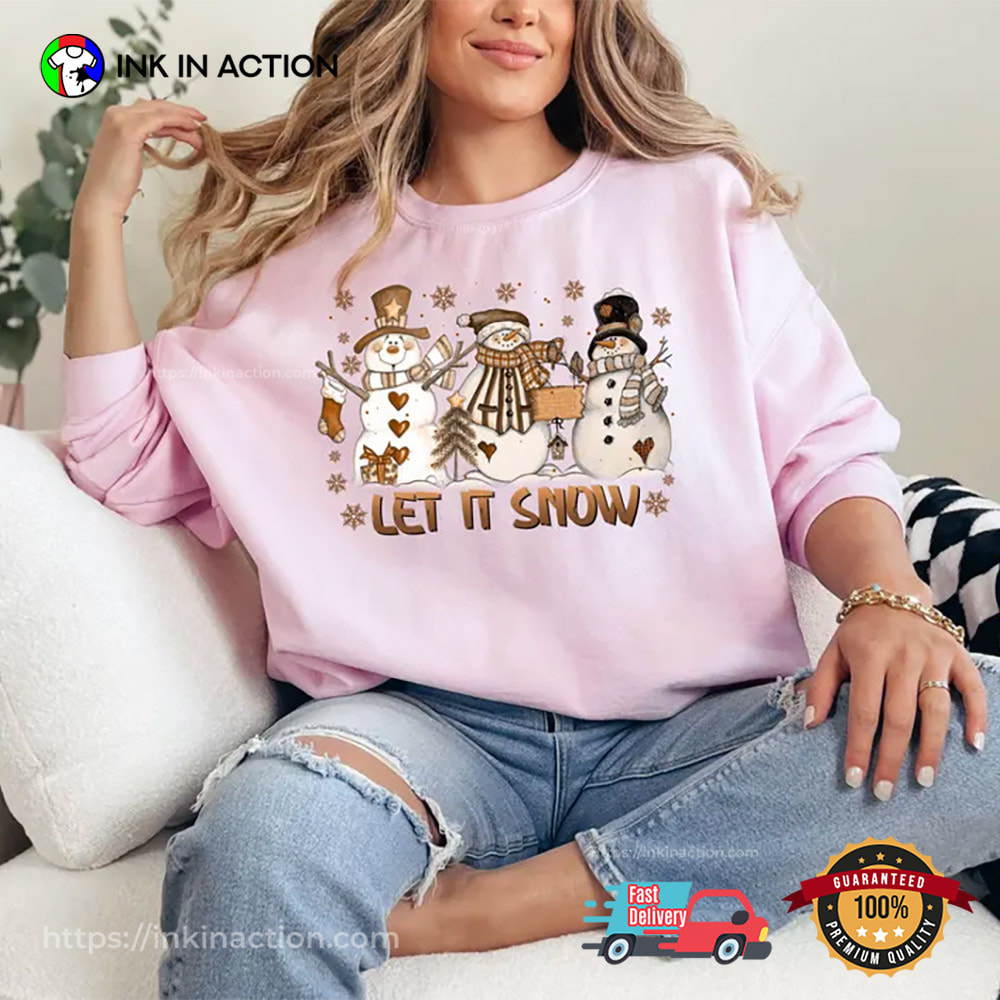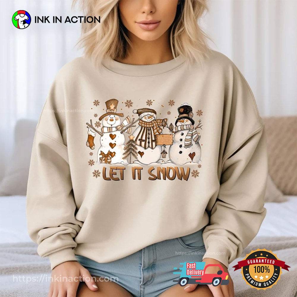 If you are looking for the perfect Christmas gift, look no further than Ink In Action’s Let It Snow Cute Snowman Christmas Shirt!