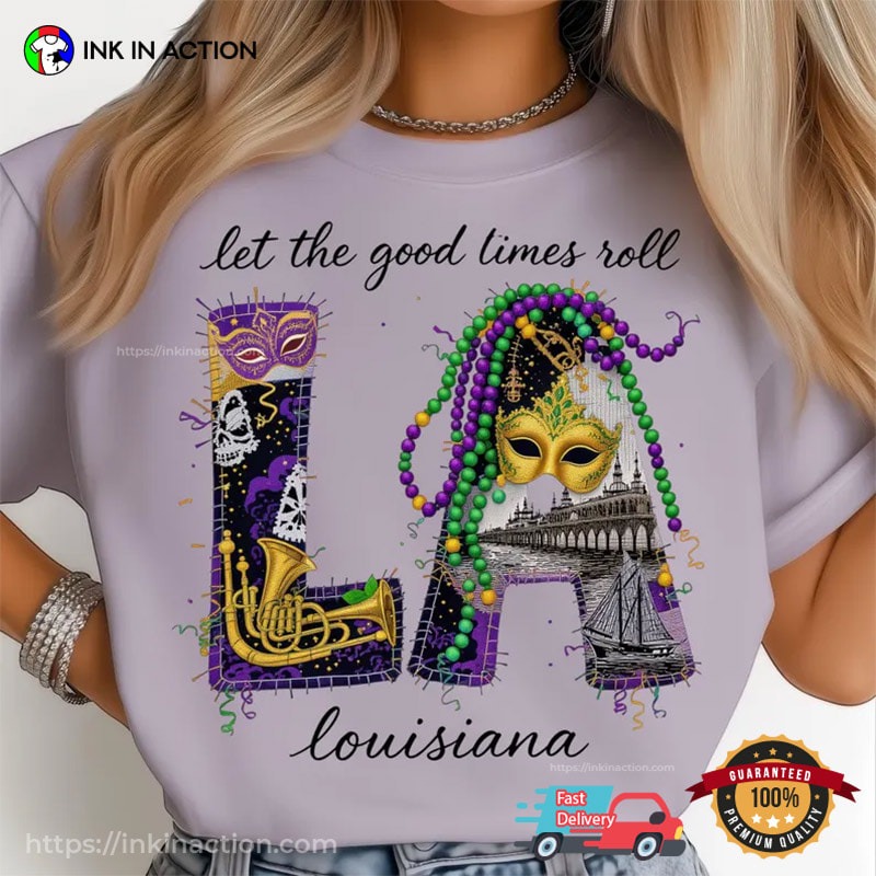 Are you ready to celebrate the holiday season with style and ease? Look no further! Our Let The Good Times Roll Louisiana Carnival Mask Comfort Colors Shirt, printed right here in the USA, offers affordable and practical options that will make your life stress-free and your celebrations unforgettable.