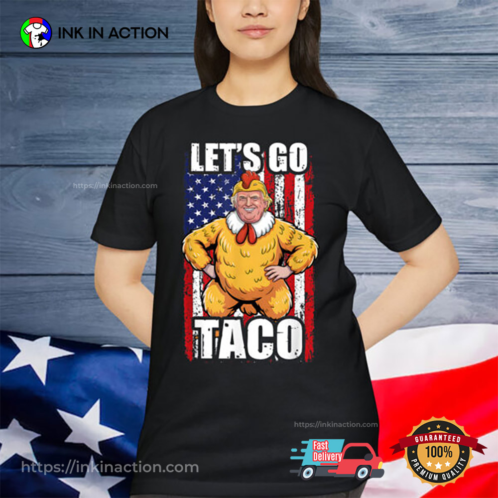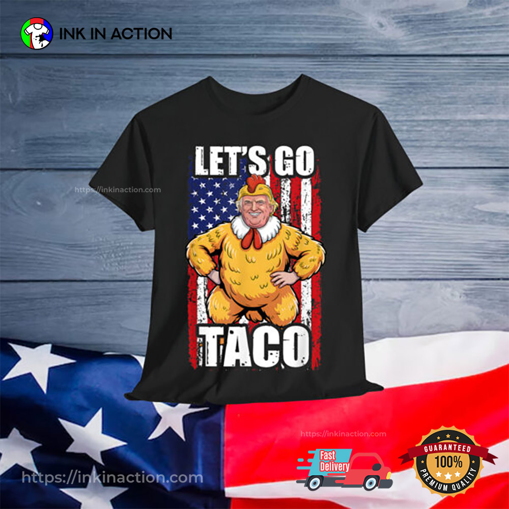 In the ever-evolving fashion world, staying on trend is not just a choice; it’s a statement. Our Let’s Go Taco Trump Always Chickens Out T-Shirt are more than garments; they are canvases of self-expression, reflecting the spirit of the times. We understand that fashion is a language, and our trending shirts speak volumes.
