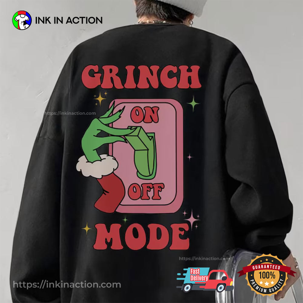 Welcome to InkInAction.com, where the magic of Christmas meets the enchantment of Disney. Our collection of Little Grinch Mode On Off Lovers Shirt is designed to infuse your festive season with joy and warmth. Proudly printed in the USA, these T-shirts are not just garments; they’re expressions of holiday cheer, family togetherness, and the beloved characters that have warmed our hearts for generations.