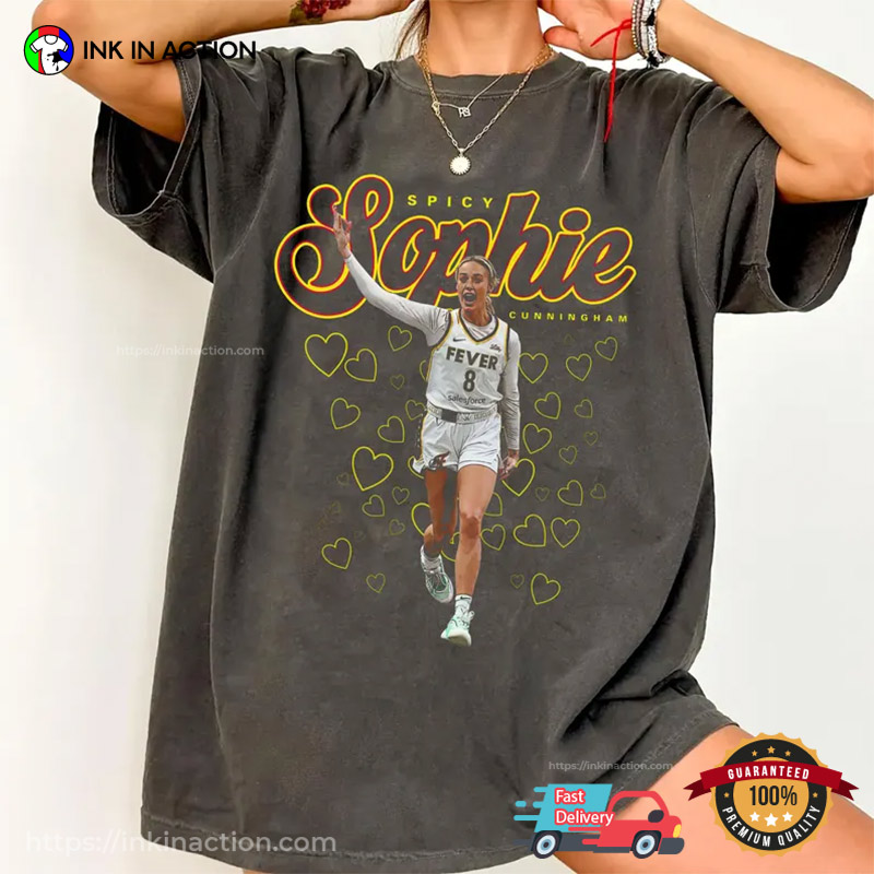 Rep your favorite WNBA star with our Love Spicy Sophie Cunningham Comfort Colors T-shirt — designed for fans who love her energy, hustle, and fearless play. Made from soft, breathable cotton, it’s perfect for game days, watch parties, or casual wear. Show your support for Sophie on and off the court with a tee that radiates her unstoppable spirit.