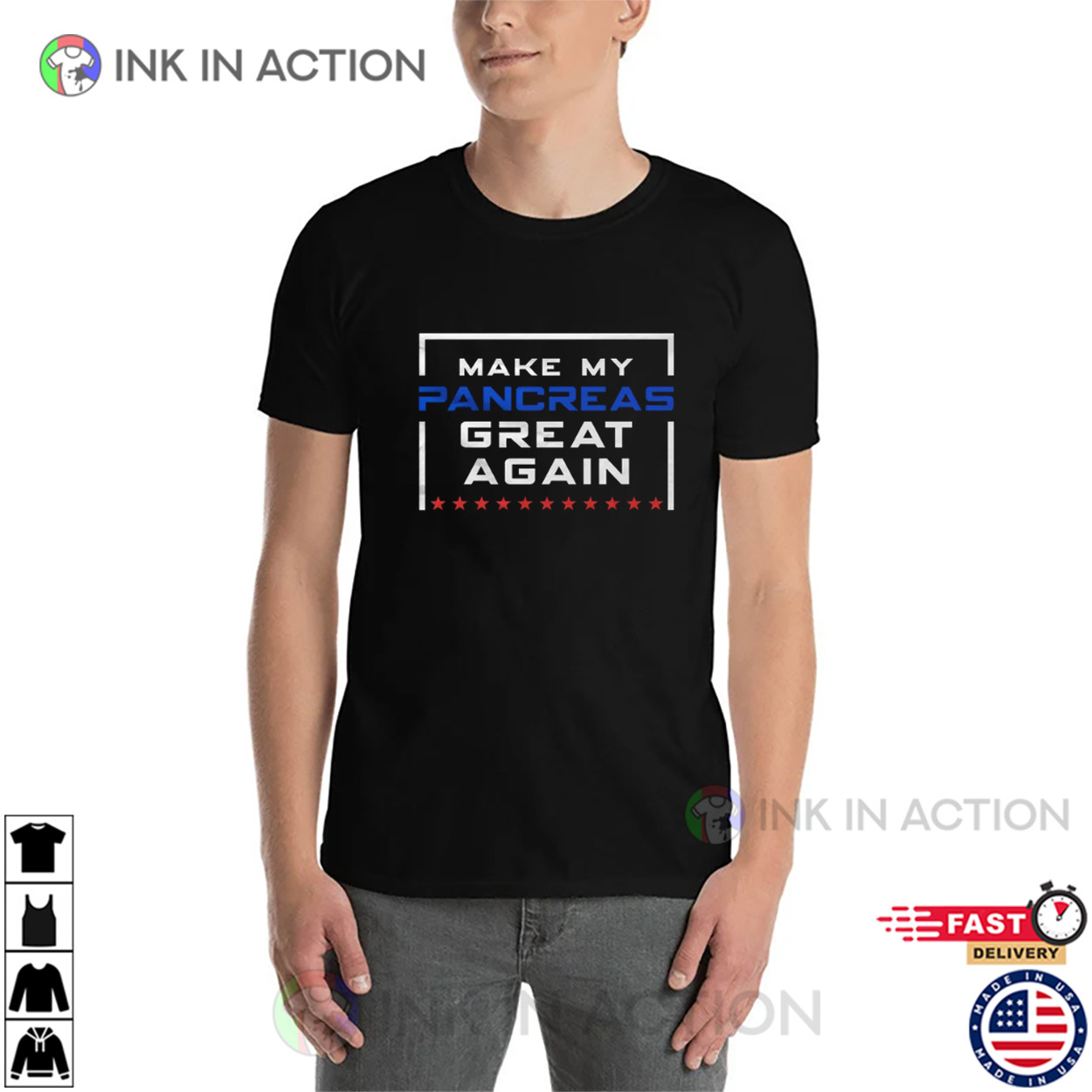 Raise awareness and show support with our meaningful Make My Pancreas Great Again Diabetes Awareness T-shirt. Featuring the symbolic blue circle or custom messaging, this shirt is a strong statement of advocacy, education, and hope.